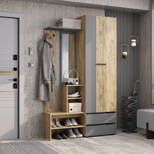 "Твист" - это стильное решение в трендовой цветовой гамме, которое идеально дополнит современные интерьеры в стиле "лофт" и "неоклассика". Компактные модули оснащены всеми необходимыми зонами хранения. Матовое покрытие - не только эстетичная, но и практичная деталь, на которой незаметны отпечатки. Геометрическая конструкция модели подойдет для разных пространств. Зеркало с еврокромкой сделает подготовку к выходу комфортной и удобной. В качестве альтернативы лицевой фурнитуре на фасадах сделаны эргономичные интегрированные срезы.