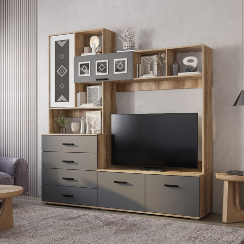 Центральная секция "Вегас" ЦС-03 - это разноуровневая многофункциональная система для главной комнаты в доме. Вместительные полки, встроенный компактный комод, открытые полки для различных мелочей позволят максимально эффективно использовать пространство.