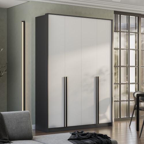Коллекция "Шарм" - современная классика в контрастном исполнении "белый/графит". Шкаф обретает массивность благодаря монолитному ЛДСП - порталу, дополнен вертикальными черными ручками и надежными петлями с доводчиками. Дополнительно комплектуется полками ПЛ-08 белый.