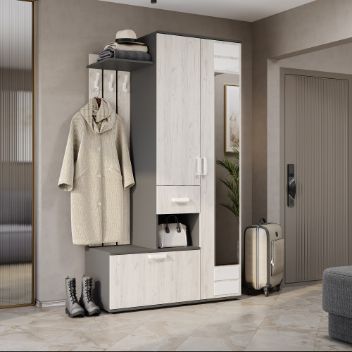 Прихожая "Лира" - идеальный баланс стиля и удобства для современного интерьера. Максимальная функциональность изделия обеспечивается за счет широкого набора предметов, элементов мебели и увеличенной глубины 524 мм.