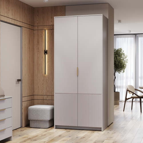Шкаф коллекции «Пандора» - это универсальное решение для спальни, прихожей и гостиной. Трендовые пастельные оттенки «кашемир» и «айриш» создадут гармоничную и спокойную атмосферу. Верхняя часть фасадов из МДФ - гладкая и матовая, а нижняя декорирована изящной вертикальной фрезеровкой. Эта особенность создает интересный визуальный контраст и структурирует пространство.
