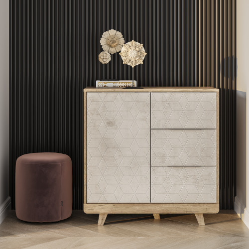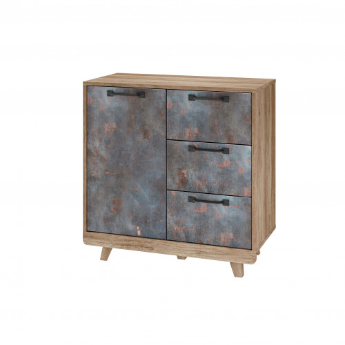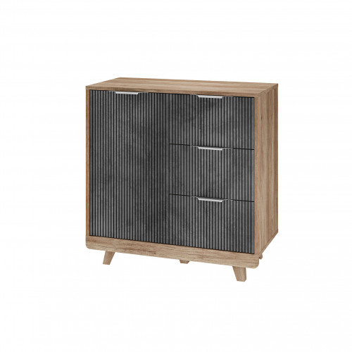 Особый шарм комодам «Мегаполис» придают трендовые цветовые решения фасадов, которые идеально вписываются практически в любой стиль. Оригинальная фрезеровка и эксклюзивная фотопечать выглядит очень эффектно и эксклюзивно. Пыли и грязи на таких поверхностях совершенно не видно, а это огромный плюс для домохозяек! Комод (КМ-12) выдержан в общей стилистике «Мегаполис» и состоит из одного распашного и трёх выдвижных ящиков на шариковых направляющих с удобной системой хранения. Полезное пространство распашного ящика разделено полкой.