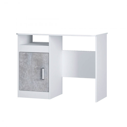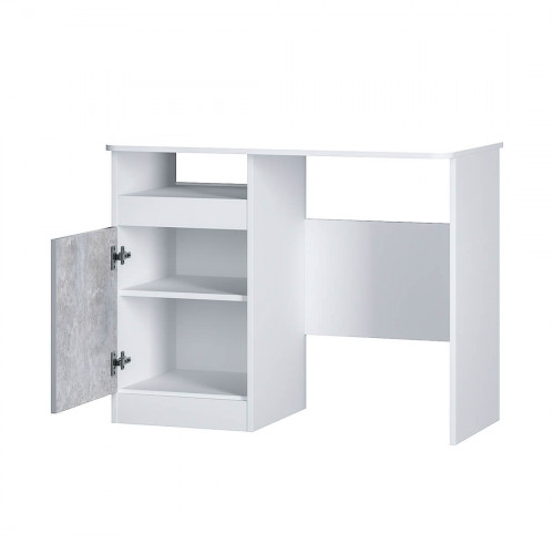Письменный стол "Паскаль" – прекрасный выбор для организации рабочего места в кабинете или детской. За счёт сочетания цветов белый и цемент светлый он впишется в любой интерьер, разместить все необходимые документы, вещи или канцелярские принадлежности можно в открытой нише или закрытых полках, находящихся под столешницей.