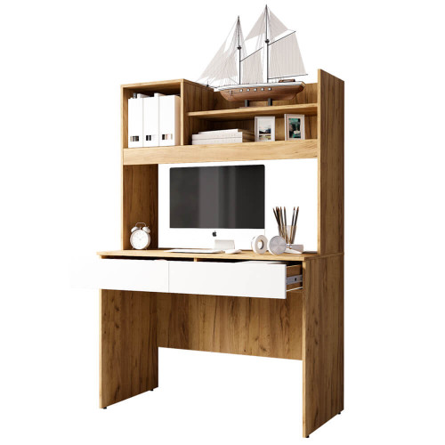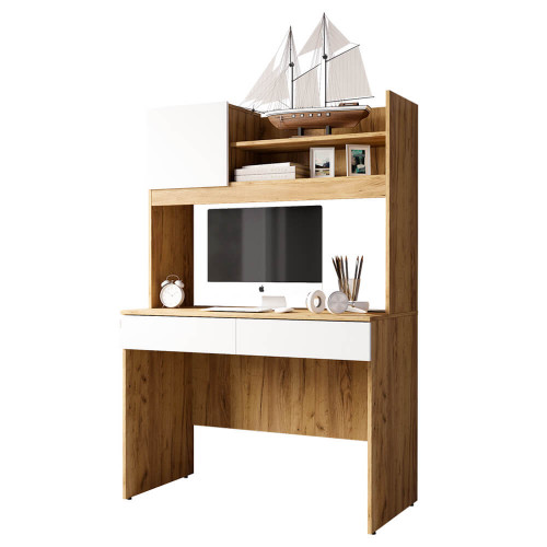 Стильный письменный стол "Селфи" станет украшением любого рабочего пространства. Модель выполнена в оттенке "крафт" в гармоничном сочетании с "белым". В выдвижных ящиках и нишах над столешницей получится разместить все необходимые для работы или учебы вещи.